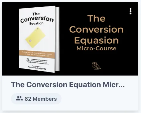 Here is your virtual ticket to the LIVE workshop of The Conversion Equation. Here, we go beyond the book and the course to give you personal guidance so your gameplan addresses your unique business concerns. Leaverage the power of the group in this online business development event.